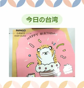 日本語:誕生日カード 中国語:生日卡片 ピンイン:shēng rì kǎ piàn 注音:ㄕㄥ ㄖˋ ㄎㄚˇ ㄆㄧㄢˋ